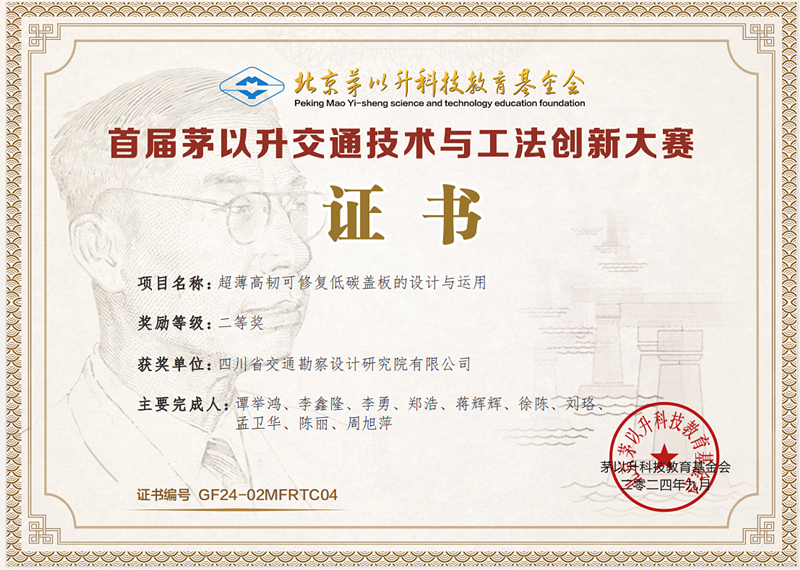 近期,公司在茅以升科技教育基金會舉辦的“首屆交通技術與工法創(chuàng)新大賽”中榮獲二等獎。